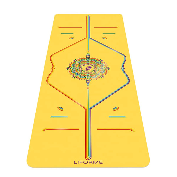 Liforme Printed Yoga Mat collection - Free Yoga Bag, Patented Alignment System, Warrior-like grip, Non-Slip, Eco-friendly, Biodegradable, Sweat-resistant, Long, Wide and Thick for comfort - Yellow