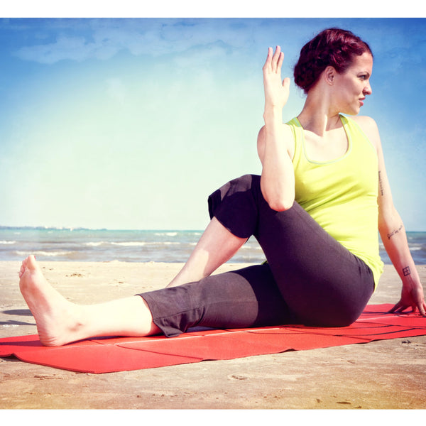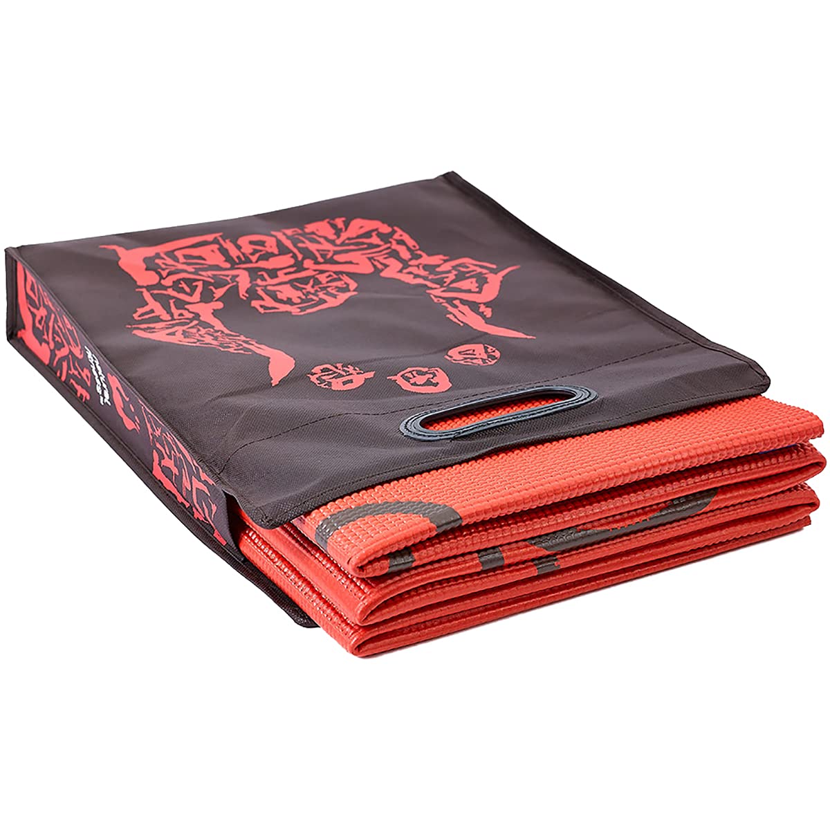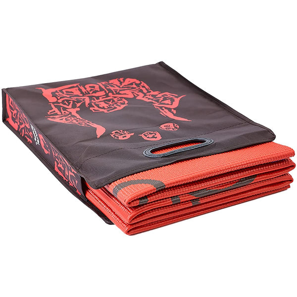 This unique ROAM Folding Yoga Mat is designed expressly for the yogi always on the move. While it still provides the length and support you need for a wide range of poses, it fits snuggly into a custom-fitted recycled PET bag and easily folds flat into a convenient one-foot square.The ROAM Folding Yoga Mat is made from Polymer Environmental Resin (PER), an alternative to traditional PVC mats. This is an innovative substance that is safer for the planet and your health than yoga mats made from standard PVC foam, this material is easy to clean and provides excellent non-slip traction. Cushioned to protect those new to yoga or other mat exercises, this material is also incredibly durable, making this yoga mat a great gym or at-home option for those practicing daily or intensely. Though designed for the yogi on the go, this mat is the perfect choice for any user due to the convenience of design and the carry bag which is included with the mat. The material is easy to clean and provides excellent non-slip traction, it is also a great option for those practicing daily or intensely.Material: The ROAM Folding Yoga Mat is made from Polymer Environmental Resin (PER), an innovative substance that is safer for the planet and your health than yoga mats made from standard PVC foam.Design: The ROAM Folding Yoga Mat folds up flat into a 1 foot square which fits into a custom made recycled PET bag. The impressions made in the mat allow easy fold lines to follow when putting the mat away.Traction: The non-slip surface of the mat provides excellent traction; the grid pattern texture of the mat grips prevents slipping as you move through poses.Cushion/Support: The ROAM Folding Yoga Mat is 4mm thick which means it allows you to feel the ground during your movements. Then thinner mat will not provide the same cushion as our thicker 6mm mats, but it will still provide a cushion barrier between your various joints and the ground.Durability: The ROAM Folding Yoga Mat is easily cared for and Durable enough to hold up in all disciplines and comparable to most studio mats.SIZE: 24 x 72 x 4mmCOLOR: Red Rock