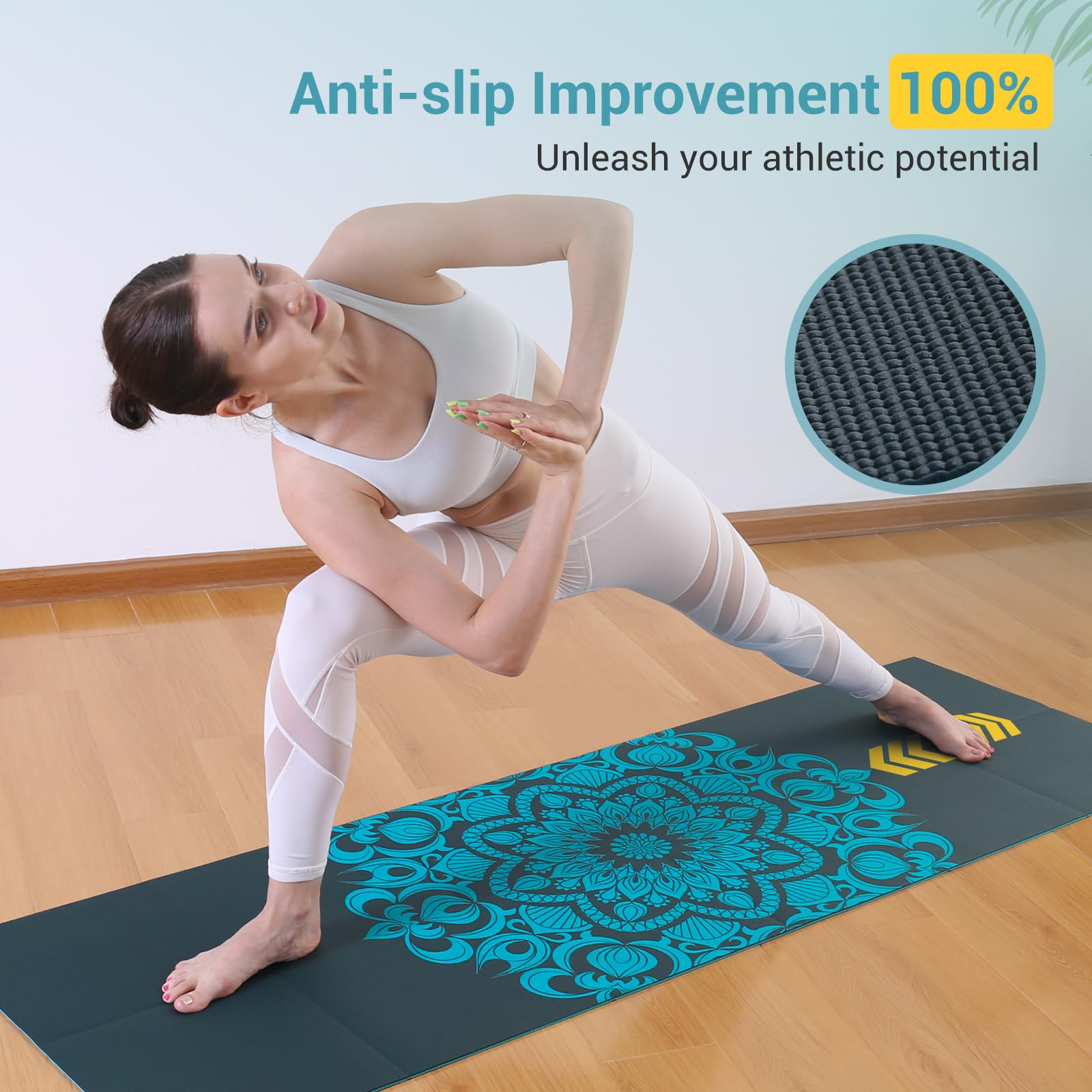 Avoalre Foldable Yoga Mat | 72 ''x 24 ''x 0.2 '' Extra Long Non-Slip Exercise Fitness Yoga Mat Workout for Women Men | OEKO-TEX Certified Eco-Friendly High Density 5mm Thick Print Pilates Mat with Carrying Bag for Travel, Green