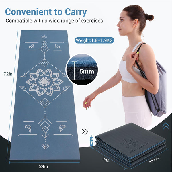 Avoalre Foldable Travel Yoga Mat Print | 5Mm Thick Folding Pilates Mat | Non-Slip High Density Floor Exercise Mat For Home Worko