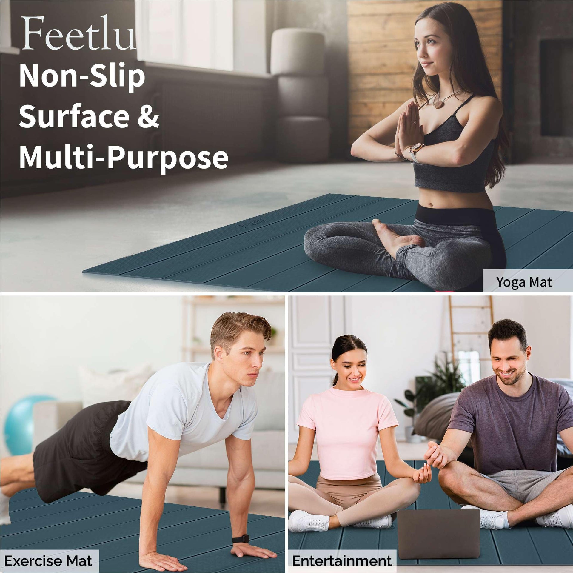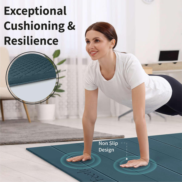 Feetlu Folding Yoga mat is designed easy to carry and easy to storage for multi-purpose Yoga Pilates, Exercise Workout. Most notably, the gripping property of the mat allows its surface to be non-slip throughout all practices. The Incomparable comfort elevate cushioning and protection for your joints and knees to the next level from minor to major floor exercise fitness sessions and is higher recommended by yoga user.