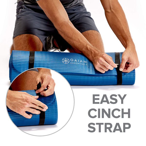 gaiam Essentials Thick Yoga Fitness Exercise Mats are the ideal classic exercise mat for all types of yoga, Pilates and floor exercises These durable, yet lightweight fitness mats are extra-thick (25 Inch) for the additional cushioning your joints need during any yoga or fitness routine Featured in classic colors with an included carrying strap so you can strap up your mat and go 72L x 24W x 25 Inch (311 lbs)