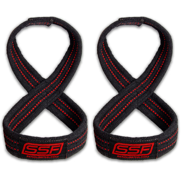 Figure 8 Lifting Straps are the #1 choice among serious deadlifters, strongmen competitors and powerlifters. These Figure 8 straps are not cheap and flimsy. These are beefy straps meant for some serious abuse. Ideal for max deadlifts, shrugs, and reps. Extra stitching for seam reinforcement. 1 year warranty Easy to use: Slip on hand through one end of the strap and loop the other end under the bar then put your wrist through the other end of the loop. Make sure to grip both the bar and wrap during the lift.