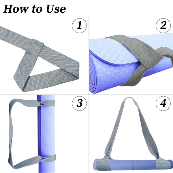 Yoga Mat Strap,Durable Yoga Mat Harness Strap Sling,Adjustable Yoga Mat Strap This yoga strap is made ofhigh-quality cotton material,special tight-knit technique, durable and strong Suitable for standard size yoga mat, easy to carry yoga mat when going out for exercise The adjustable strap is made from thick polyester cotton, Its not just a strap to hold your mat, it can also be used as a stretchable strap The yoga mat strap band will keep your mat tightly rolled and secure Specifications: Item Type: Yoga Mat Straps Material: 100% cotton color: grey Machine-Washable: Yes Package Included: 1* Yoga Mat Straps Notes: Yoga mat not included