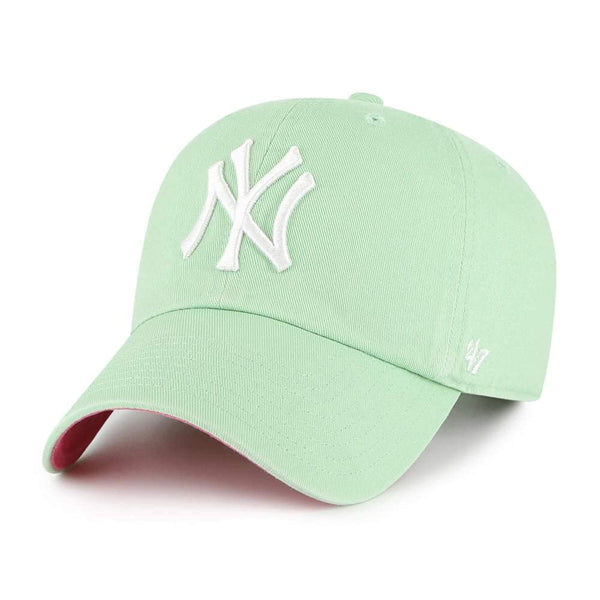 '47 New York Yankees Adjustable Cap Clean Up Mlb, Green, Pink, One Size