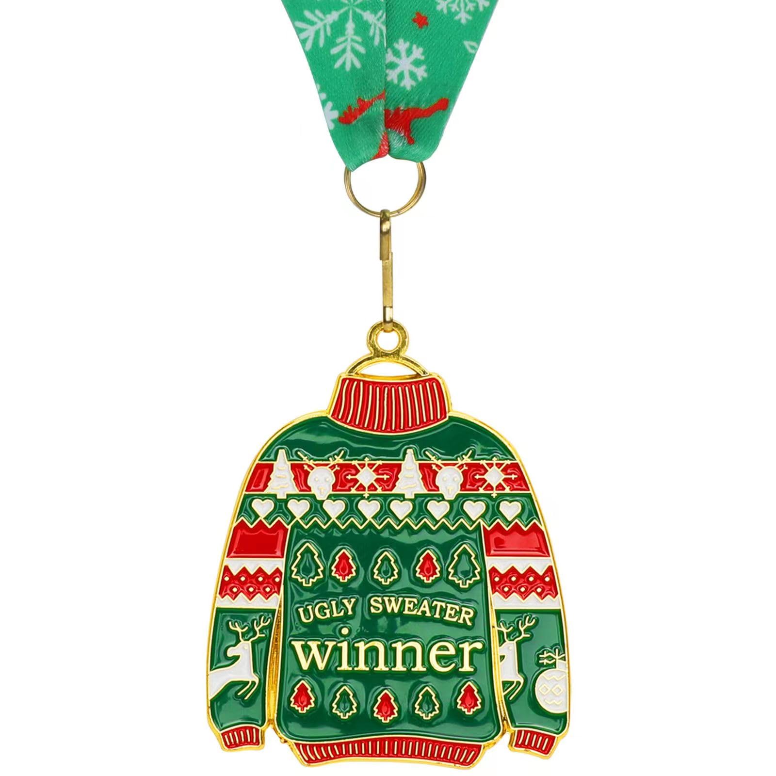 Christmas Ugly Sweater Medal Christmas Style Neck Ribbon, Award Contest Medals Christmas Tree Ornament For Ugly Sweater Contest Party, Best Ugly Christmas Sweater Trophy Award