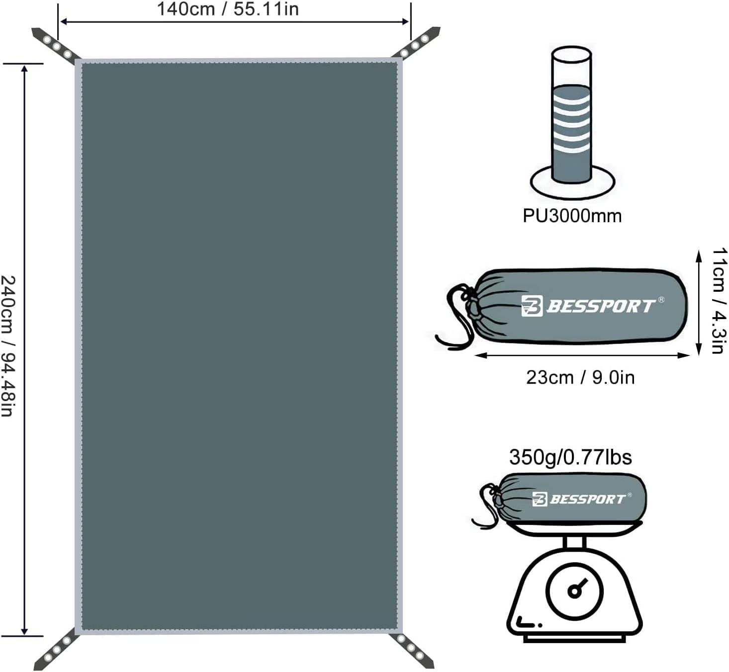 Bessport Tent Footprint for 1-2-3-4 Person Tent Waterproof camping Tarp with Drawstring carrying Bag for Picnic, Hiking and Other Outdoor Activities (4 Person)