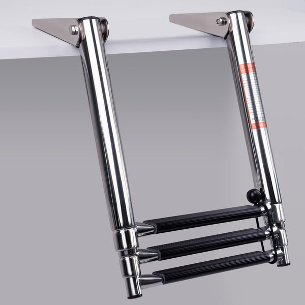 Boat Ladder 3 Step,Stainless Steel Telescoping Heavy Duty Pontoon Swim Boarding Ladder For Outboards,Yacht,Marine Fishing Boat