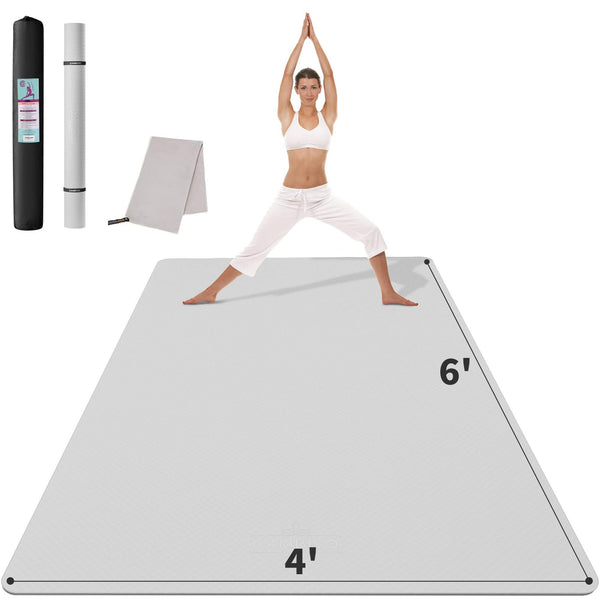 Durable Large Yoga Mat For a Better Yoga WorkoutcAMBIVO TPE yoga mat is mainly composed of Thermoplastic elastomers and other material foamed under high temperature which makes it closed-cell structure featuring and easy to clean Soft & Thick with superior cushioning to protect your joints, while providing firm, stable support for standing postures Its good elasticity, durability, and lightweight making it suitable for travel and household use WHY cHOOSE cAMBIVO YOgA MAT Soft & Thick with Superior cushioning to Protect Your Joints High elasticity and resilience Super Lightweight & Easy to carry contains no latex, Thickness: 6mm Dimensions: 72x 48 (183cm x 122cm) care Instruction: 1 Dry the Fitness Mat with a towel after use 2 Wipe the Fitness Mat with a damp cloth to clean, Air dry 3 Avoid exposing the Fitness Mat to heat or excessive sunlight 4 Store in a cool, dry place Package Include: 1xPremium Extra-Large Fitness Mats 1x100% Microfiber Towel 1xStorage Bag 2xStorage Straps