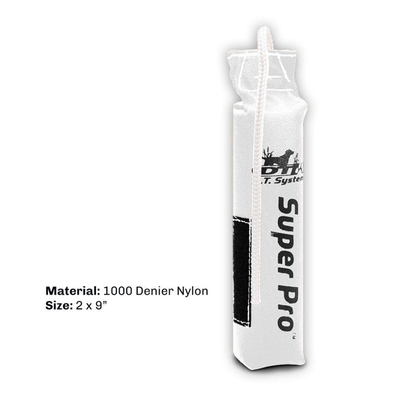 TOUGH & PRACTICAL - The Super PRO hunting dog training dummies by DT Systems feature a durable 1000 Denier Cordura Nylon shell with high quality Nylon thread; Measuring 2x9'', these small training dummies are designed for maximum performance | FOR LAND & WATER TRAINING - Built to float, these dog fetching toys are excellent for waterfowl training, simulating real-life hunting conditions; Your dog is sure to be challenged and engaged as this dummy perfectly imitates a bird and efficiently trains your sporting dog to retrieval skills both on water or land | SCENT STRIP - The Super PRO Series Canvas Dog Training Dummies feature a scent-holding Scent Strip sewn into the dummy surface; This makes adding your choice of scent quick, clean, and easy; Scent stays on the scent strip pad making scent tracking of the dummy easier for the dog | OPTIMAL PERFORMANCE - Engineered for throwing ease, these hunting dog dummies are weighted just right for long, accurate throws; Featuring tough, durable sewn-in rope handles, they allow you to achieve great distances with minimal effort; These dummies are gentle on your dog's mouth, ensuring a comfortable retrieve every time | VERSATILE TRAINING BUMPERS - These dog training bumpers are the ultimate training tools for dogs of all ages and skill levels; The lightweight design makes these hunting dog training toys easy to throw by hand, making them great for everything from intensive adult dog training sessions to beginner-friendly exercises for puppies