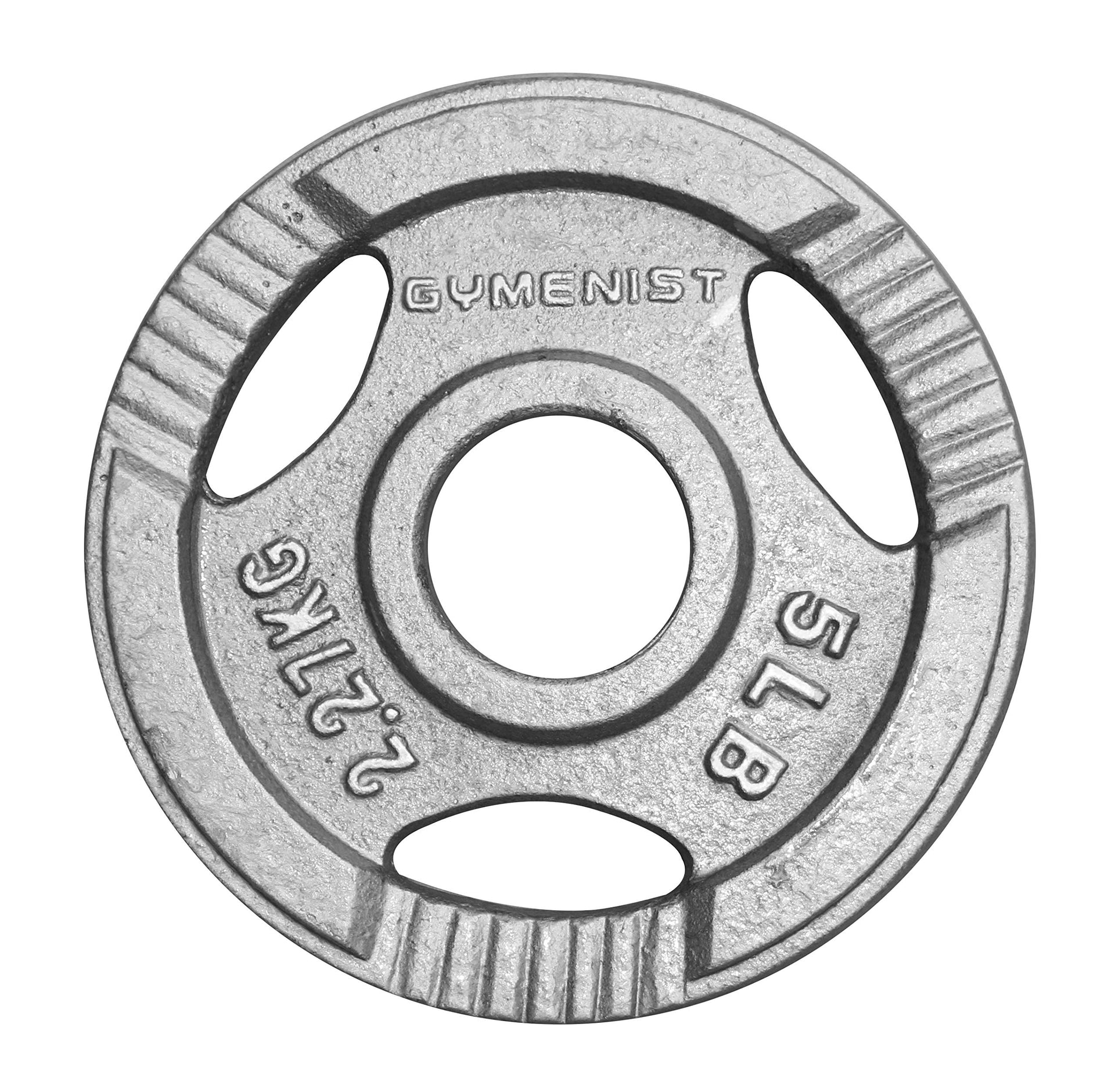 Boost Your Workout: The Gymenist grip plate weight is a must-have accessory for a performant workout. These plates are a great way to perform intense muscle strengthening exercises and endurance training while helping you to increase flexibility and balance. | Discover Our Collection: The Gymenist weights for barbells come in 7 different sizes that allow you to personalize your workout: 2.5lb / 5lb / 10lb / 15lb / 25lb / 35lb / 45lb. The collection is designed to help you make important progress in your fitness journey and use gradually heavier plates. | Design: The rubber metal lifting plates feature 3 large openings with strips on them for easy grip. This allows you to insert the plate with ease into any Olympic bar and perform a high-intensity Excellent workout at home or the gym. | Made to Last: These Olympic weights rubber and metal plates are made of heavy-duty metal that will pass the test of time. The plates are covered in rubber, ensuring a better grip and protection for your hands. | Sizes: 2.5-LB _ 5-LB _ 10-LB _ 15-LB _ 25-LB _ 35-LB _ 45-LB The collection is designed to help you make important progress in your fitness journey and gradually upgrade to use heavier plates on you workout exercise journey | These plates will fit for standard 2'' Olympic barbells, holes are 51 mm