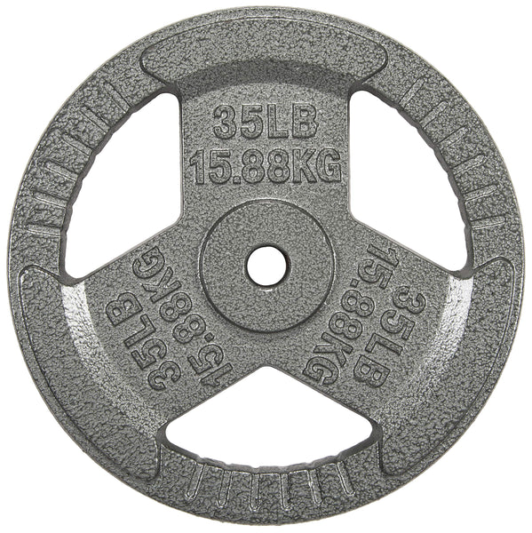 At the core of all weightlifting style strength training are weight plates and will be a welcomed addition to any proper home gym workout equipment setup Strength & conditioning work allows you to build durable muscle in your lower body, core, and upper body Our cast Iron Weight Plates feature both pound and kilogram signage for easy identification and they are finished with a robust layer of enamel that helps mitigate the potential for rust or scratching Additionally, they are designed with Olympic style ergonomic grip that can be carried with relative ease, which can be used as a workout itself called a AFarmers carryA The machined hole allows for a tighter fit on any of our 1A or 2A Barbells However, you may do plate only exercises like the floor press or plate haloAs in a way similar to using dumbbells or kettlebells To start your healthy lifestyle, we recommend adding a barbell or curl bar and a pair clamp collars to the weight set As you progress in your training regimen and become a workout warrior, you can get any of our Sport, Pro, or Elite Series Power cages or Squat Stands to enhance your experience