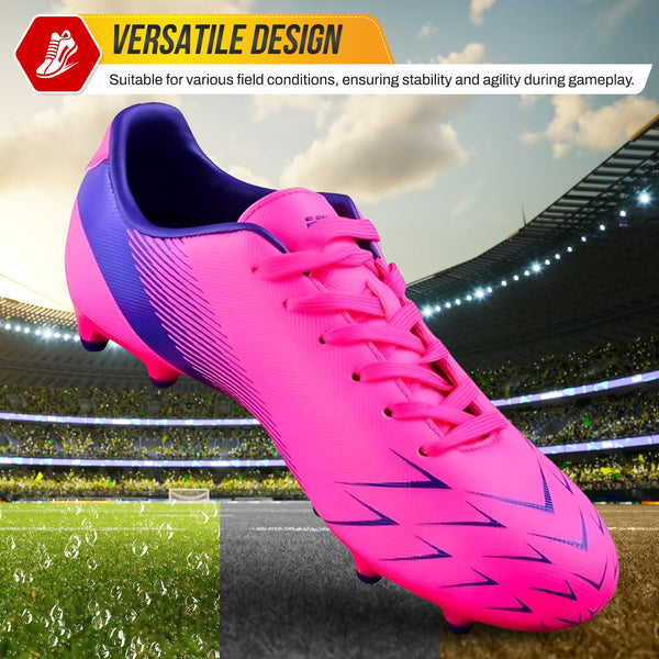 [/short_description] [description1] The Ranger Firm Ground soccer cleats are designed to provide comfort, traction, and durability on the field. The Ranger FG“?Cleats is designed for the budding soccer player. With a textured synthetic upper that is lightweight, durable, and water-resistant, this cleat provides the perfect fit for boys and girls alike. The two-color molded TPU outsole features round studs“?providing superior traction and stability on the pitch. ideal for firm/hard playing surfaces. [/description1] [description2]