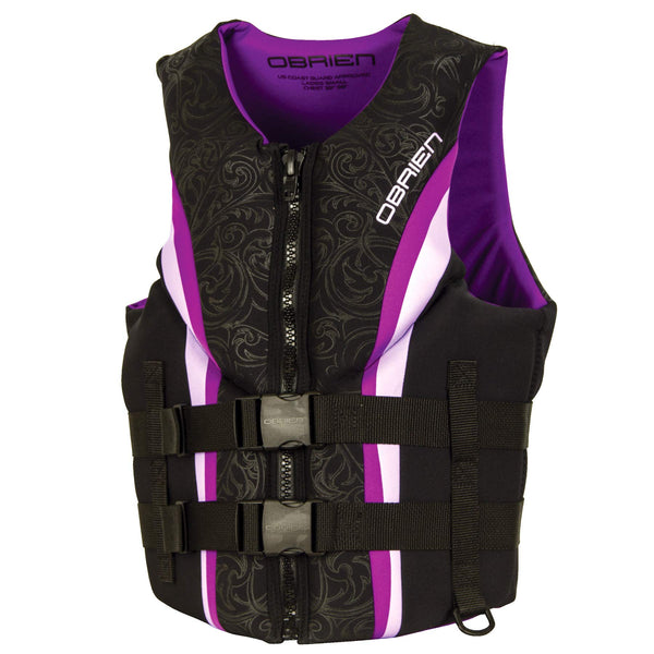 The Obrien Ladies Impulse Neoprene Vest is a comfortable Floatation Vest that is US coast guard Approved The Vest has Wide Armholes designed for Active-Use when Boarding-or-Skiing providing Freedom of Movement The 15mm Neoprene Outer gives Extreme comfort and Fit The Zippered Front closure with 2-Adjustable Belts equipped with Squeeze-Style Side-Release Buckles make Donning and Doffing Fast-and-Easy and provides a Secure Fit The Vest is Hinged-in-the-Front for Added comfort and Maneuverability