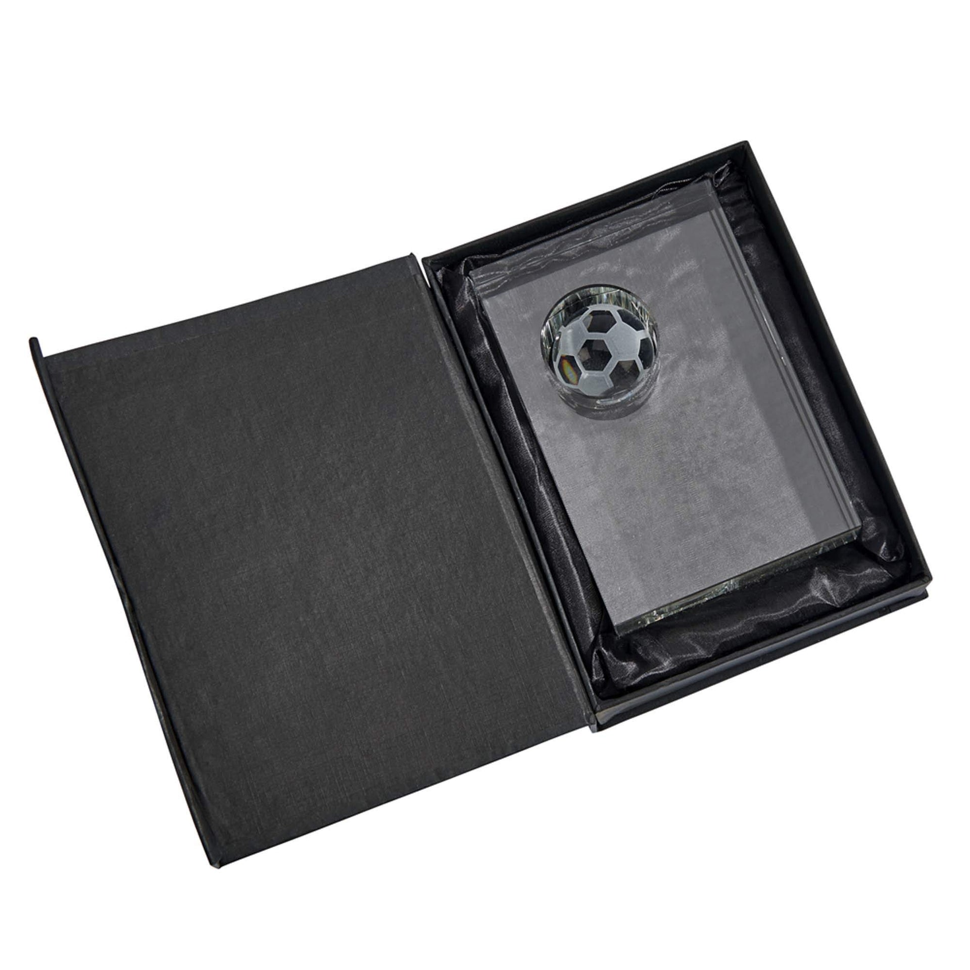 These optic crystal soccer trophies are available in 3 different sizes so they make great tournament awards as well as great gifts. Use them vertically or horizontally. There's plenty of space for engraving tournament info or a special congratulatory message or whatever you would like to say. Overall size is 7'' x 4.75'' x 1.25''. Gift Boxed.Featurestrophyoptic crystalgreat soccer awardMaterial: optic crystalProduct Size: 7''H x 4.75''W x 1.25''LMade In China