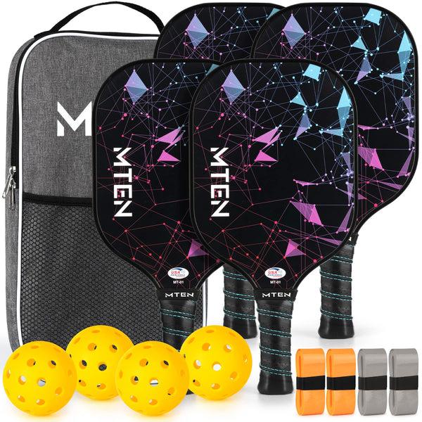 - Q: What is included in the Pickleball Paddles set? A: The Pickleball Paddles set includes 4 pickleball paddles, 4 outdoor pickle balls, 1 portable carry bag, and 4 grip tapes.