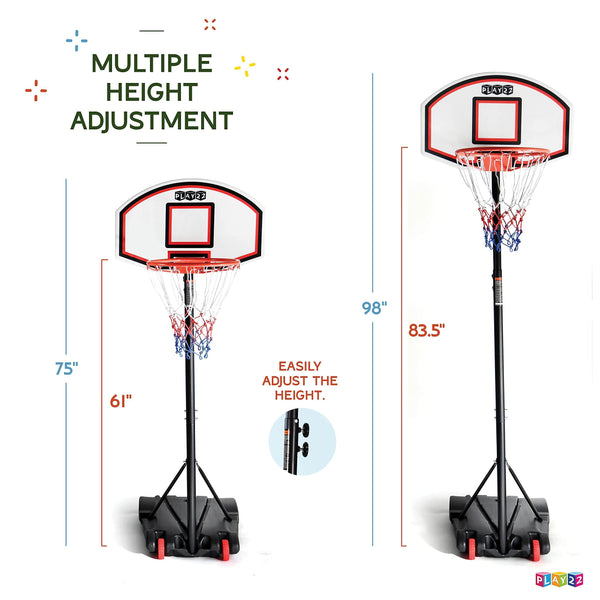 Are you tired of wishing it was not raining so you could play basketball Well, you should not be tired anymore With this basketball hoop outdoor, you could bring it anytime and anywhere You can play basketball indoors and outdoors, rain or shine ADJUST HEIgHT AccORDINg TO YOUR PREFERENcE With the innovative telescopic feature which can shorten and lengthen the pole, you and your children can never outgrow our Adjustable Basketball Hoop It can be set anywhere between 179 meters and 213 meters, perfect for any height NO MORE POSTPONINg THE gAME This is a multi-functional indoor basketball hoop for kids and adults unit that can be used outdoors and indoors Perfect for school, youth clubs, backyard, office spaces, and basically anywhere gone were the days when we reasoned out why we couldnAt play basketball NOTHINg BEATS A STURDY BASE Designed for a great game experience, this portable basketball hoop with stand is here to provide enjoyment Our sturdy base is made from PE plastic, rest assured that you donAt have to worry For better stability, you have the option to add up to 25 Kgs of water, or 30 Kgs of sand to anchor the base unit to the ground You can also freely move the basketball hoop from one place to the next before filling the base Thanks to the added wheels, it provides convenience Specifications: Height can be set from 179 metres (5ft 9in) to 213 metres (6ft 9in)Backboard measures 71cm x 45cm - Main pole measures 45mm in diameterThe sturdy base measures 74cm x 55cm x 13cm All these benefits are yours with the Play22 Premium Basketball Hoop   What are you waiting for Add our basketball hoops to cart now and enjoy it with your family and friends