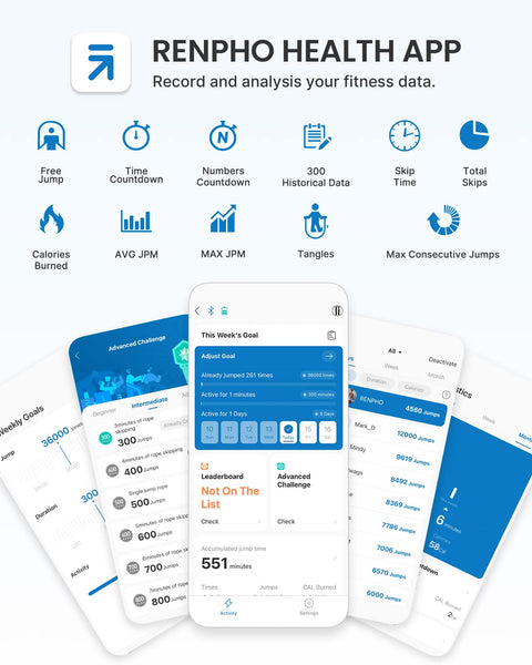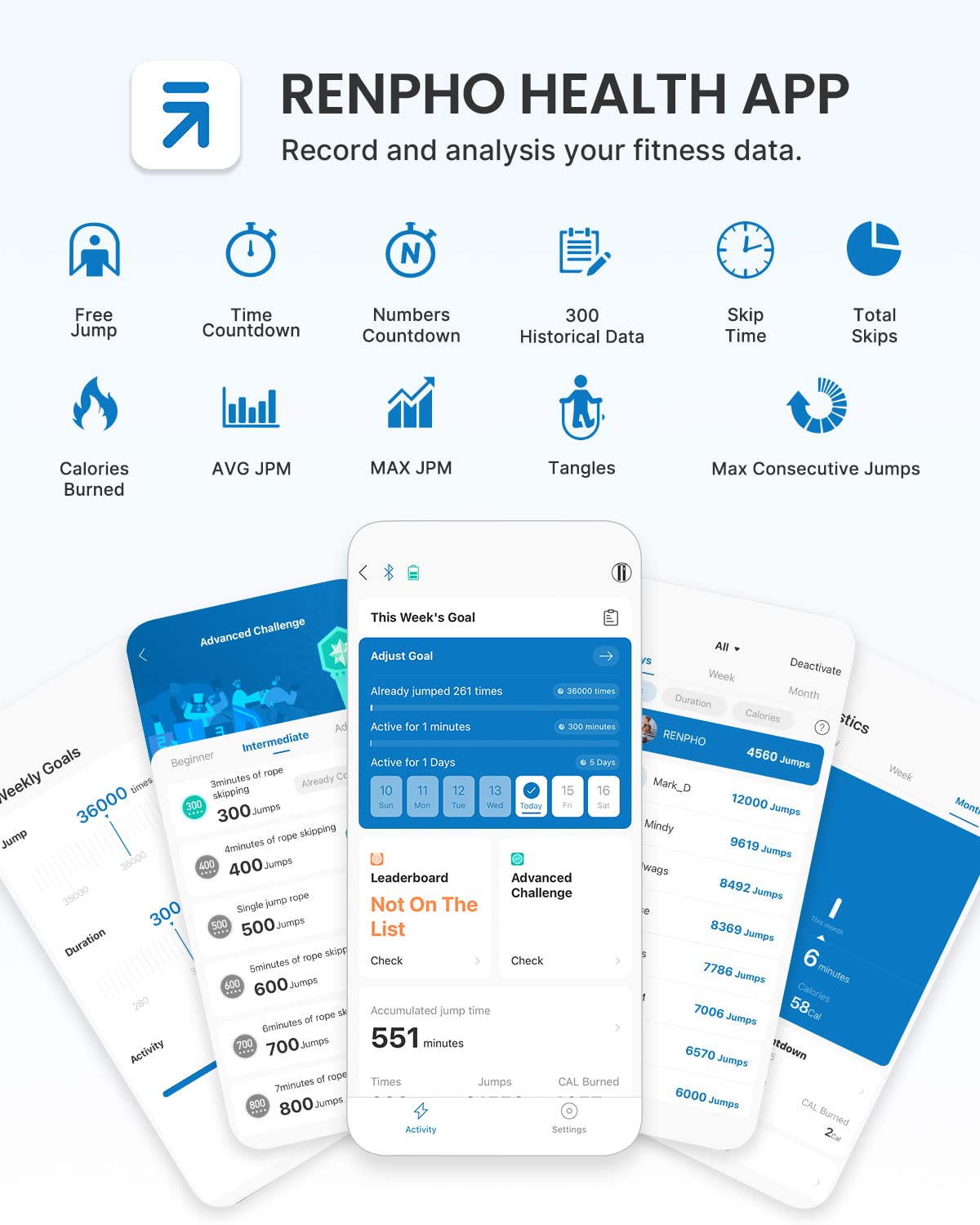RENPHO Smart Jump Rope, Fitness Skipping Rope with APP Data Analysis, Workout Jump Ropes for Home gym, crossfit, Jumping Rope counter for Exercise for Men, Women, girls
