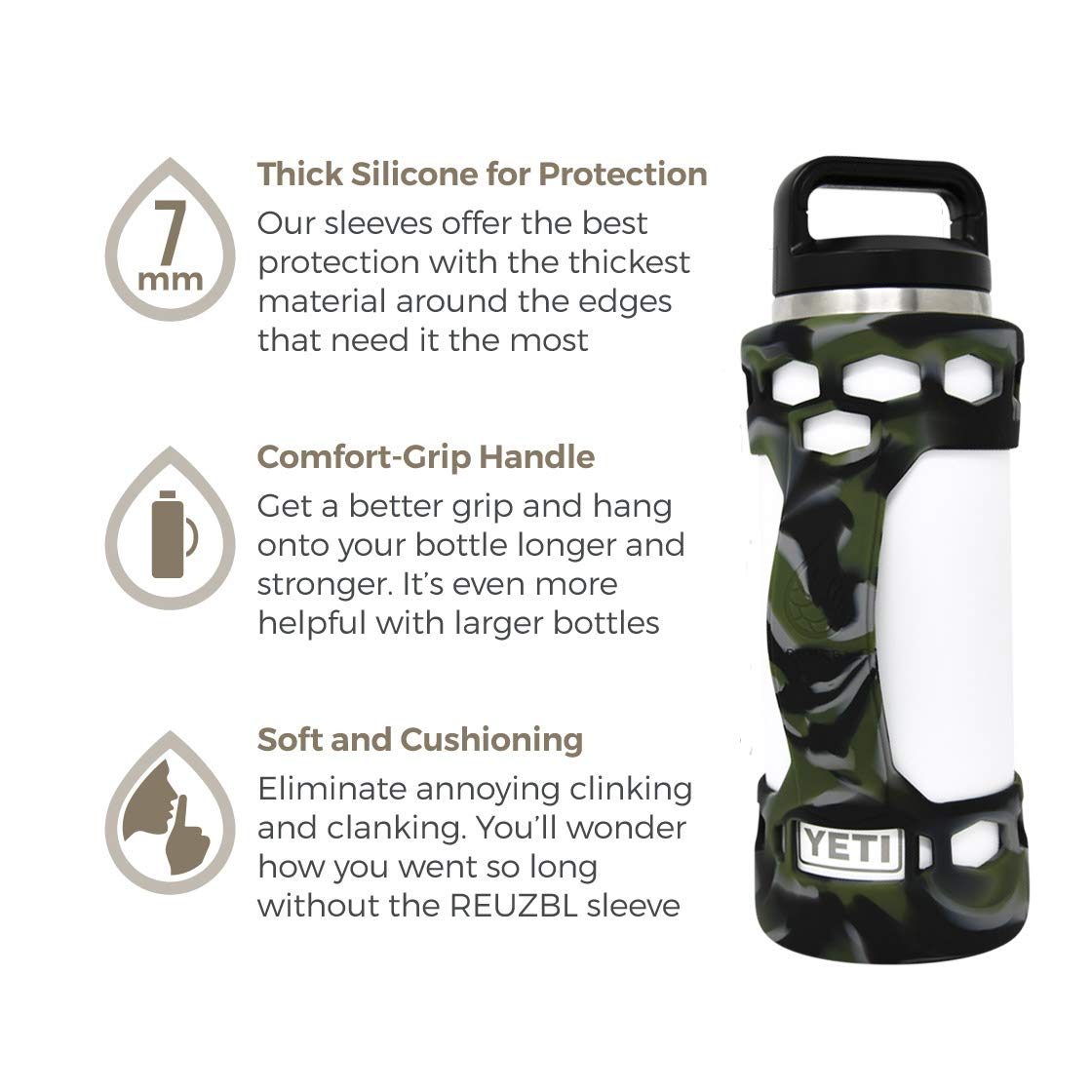 Reuzbl Bottle Bumper Silicone Boot Sleeve Protector Accessories With Handle For Yeti 36 Oz Stainless Steel Water Bottles
