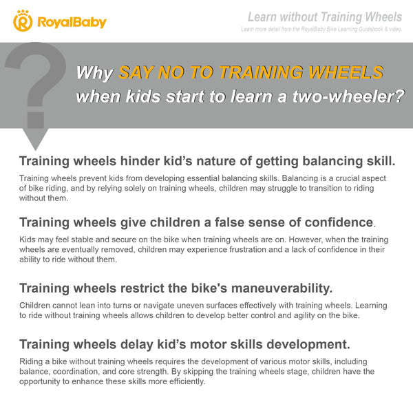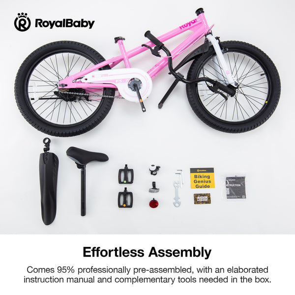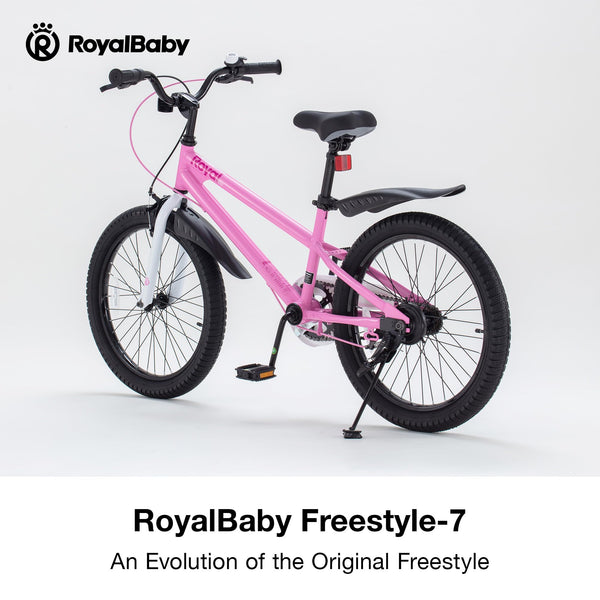 ???????????? ???????????? - RoyalBaby Freestyle 7 is the aesthetic upgrade of the original Freestyle with gorgeous metallic paint and sporty color contrast. The brake cable with contrasting colors indicates front and rear brakes and adds sporty tones to the design. | ???????????????????????? ?????? ???????? - Each bike has RoyalBaby patented sealed bearing for smooth pedaling. The jet engine water bottle adds more joy to the ride. The optimized geometry is designed to work perfectly without training wheels. | ???????????? ?????? ???? ?????????? - Kids naturally pedal back to adjust the pedals positions while learning to ride, and a coaster brake will get in the way. With RoyalBaby kids specified two-hand brake bikes and short pull brake lever, kids can learn to bike without being held back by a coaster brake and still have equivalent braking power. | ???????? ???????????????? - The bike comes 95% pre-assembled, with an elaborated instruction manual and all tools needed in the box. It is easy enough to put together in 15 minutes. | ???????????? ??????????????? - RoyalBaby bike complies with the CPSC standards and is trusted by millions of families in more than 80 countries globally. RoyalBaby offers a lifetime warranty on the frame and local 24-hour service.