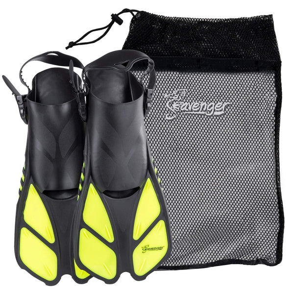 Seavenger Torpedo Swim Fins | Travel Size | Snorkeling Flippers With Mesh Bag For Women, Men And Kids (Yellow, Xs/Xxs)
