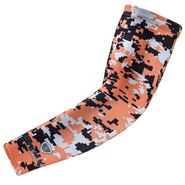 Stromguard Compression Sports Arm Sleeve Digital Camo Baseball Football Basketball - (One Arm Sleeve) (Youth Medium, #4 - Orange