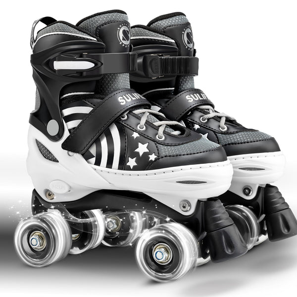 Sulifeel Rainbow Unicorn 4 Size Adjustable Light Up Roller Skates For Girls Boys For Kids (E Black, Medium - Big Kid)