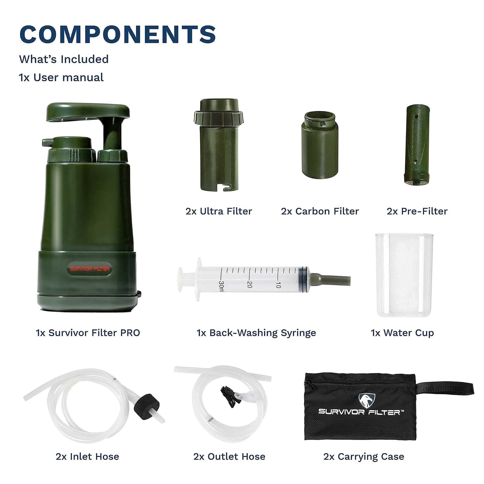 Survivor Filter PRO Extender Series - Portable Water Filter Pump with Extra Replacement Filters