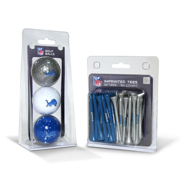 - Q: What is included in the Team Golf NFL Detroit Lions golf pack? A: The pack includes 3 multi-colored golf balls with a full-color team logo imprint and 50 multi-colored 2-3/4 inch regulation tees featuring the team imprint.