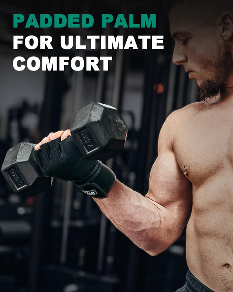 Trideer Padded Workout Gloves For Men - Gym Weight Lifting Gloves With Wrist Wrap Support, Full Palm Protection & Extra Grips Fo