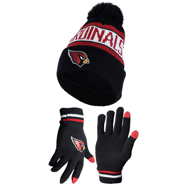 - Q: What team is represented on the beanie and gloves? A: The beanie and gloves set features the Arizona Cardinals team logo, presented in official team colors.