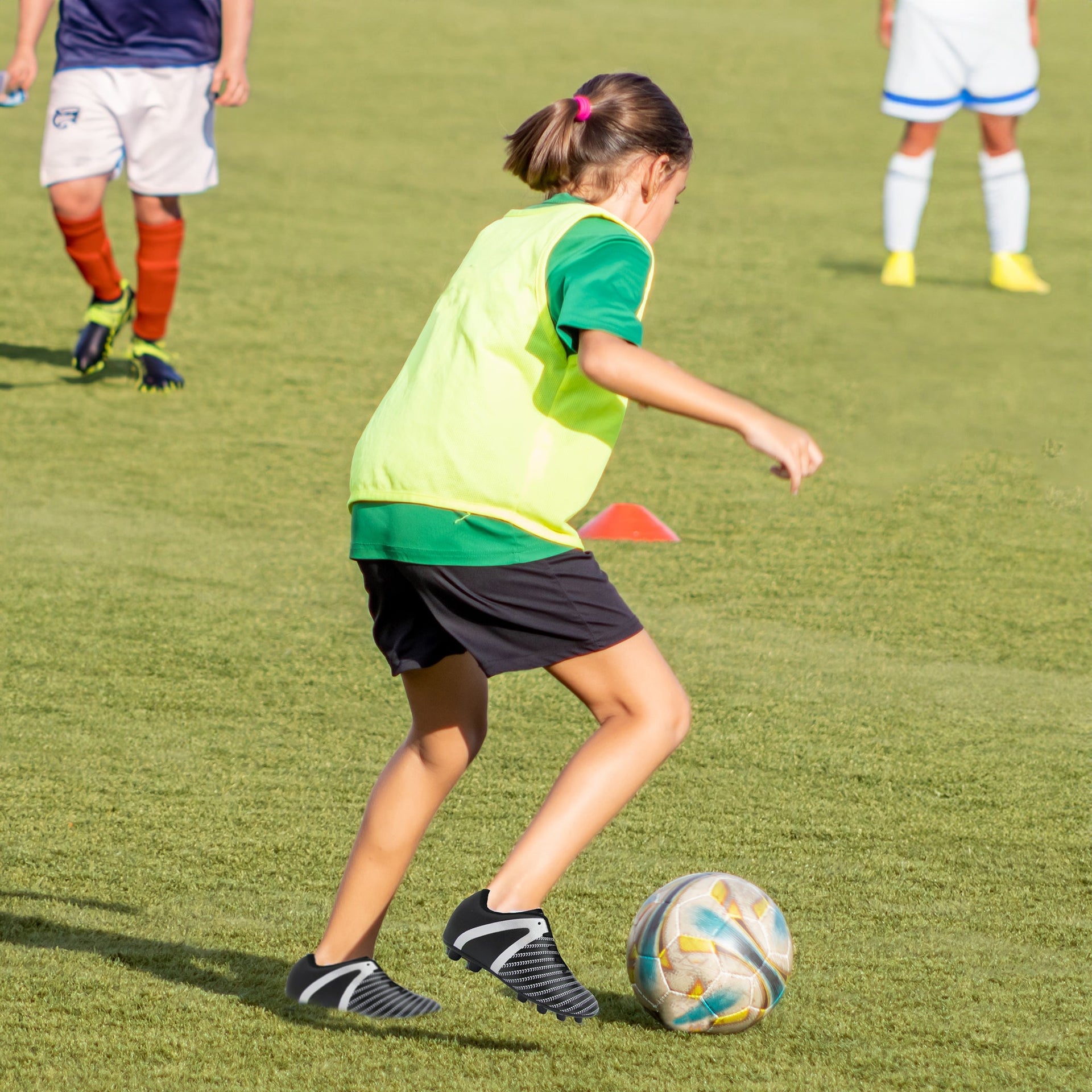 Ans: These soccer shoes are available in a range of sizes to accommodate different foot sizes. Please refer to the size chart for specific measurements.