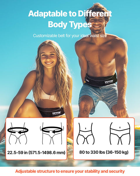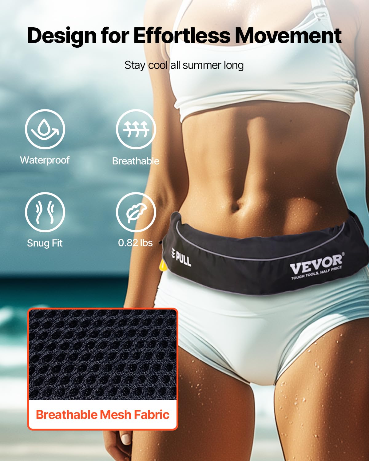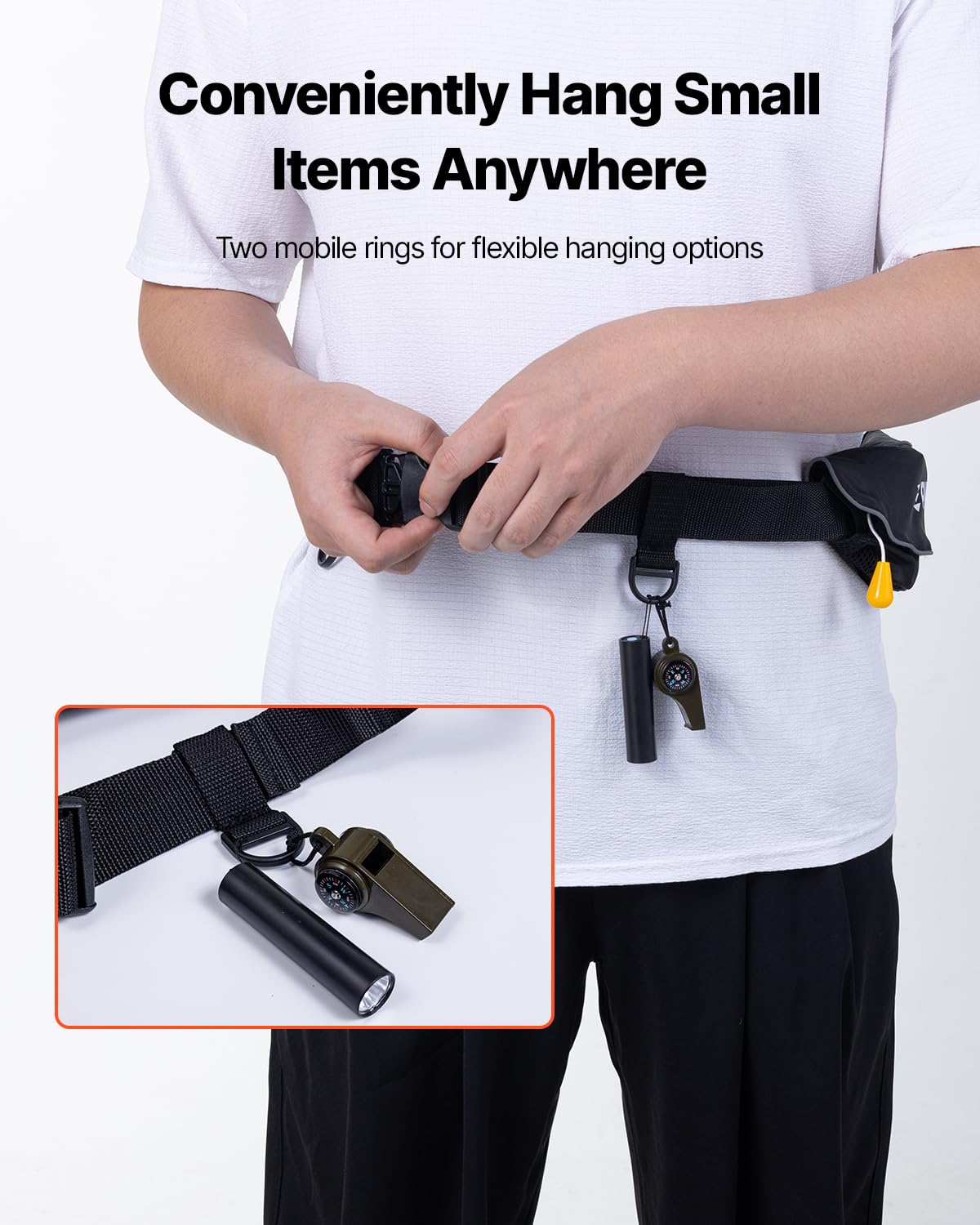 Surround 105N High Buoyancy: Pull the cord to quickly inflate the inflatable belt pack, providing 100N of buoyancy. The buoyancy can reach 105N after secondary oral inflation. The surround buoyancy airbag brings even buoyant support without pulling it over your head for easier use. Note: CO2 cylinder not included. Please purchase and install a compatible 24g CO2 cylinder with a 1/2-20UNF threaded inflation valve | Stay Comfortable, Breathe Easy: Our manual inflatable belt pack combines security, comfort, and ease of use, avoiding the bulky feel of traditional life jackets. Weighing just 0.82 lbs (0.37 kg), made from waterproof 400D Oxford fabric, it keeps you dry, while the mesh lining on the inside helps you stay cool and fresh even in hot summer weather | Customizable to Fit All Body Types: Our inflatable belt waist pack ensures a secure and snug fit for users of various body shapes and sizes. It comfortably fits individuals weighing 80-330 lbs (36-150 kg) with waist sizes ranging from 22.5-59 in (571.5-1498.6 mm). Enjoy a personalized fit for unmatched comfort and security during all your water activities | D-Ring for Easy Gear Attachment: Equipped with two movable D-rings, this inflatable belt pack allows you to easily attach essential security items such as a whistle, flashlight, or other rescue gear. Keep your vital equipment within reach, enhancing your security during any water adventure | Ideal for Water Activities: This stylish manual inflatable belt pack is suitable for stand-up paddleboarding (SUP), kayaking, fishing, sailing, and recreational rowing. It fits comfortably around your waist, allowing for unrestricted paddling or movement. When not in use, it stores away conveniently and compactly