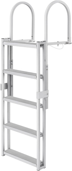Retractable Design: It's free for you to adjust the height of this ladder step part at the range of 48-60 inch, meeting the demands of different positions of water depth. | Nonslip Pedals: This ladder contains 20.5x4 inches 4-step large pedals. The pedals are covered with nonslip pads, allowing you to get up and down the ladder comfortably and securely. | Strong Weight Capacity: Our dock ladder is made of thickened 6063 aluminum alloy, and the surface adopts a special sandblasting process for great load-bearing, scratch resistance, and corrosion resistance. The load capacity can reach 350 lbs, stable and not deformed. | Ergonomic Design: 12 in step distance better fits body usage habits, which is more comfortable and labor-saving for you to enter the water and go ashore. The thickened round handrails bring you comfortable holding with hands. | Apply It Everywhere: The dock ladder is specially designed to complete most boarding tasks. It is widely used in docks, sea boarding, swimming pools, etc.