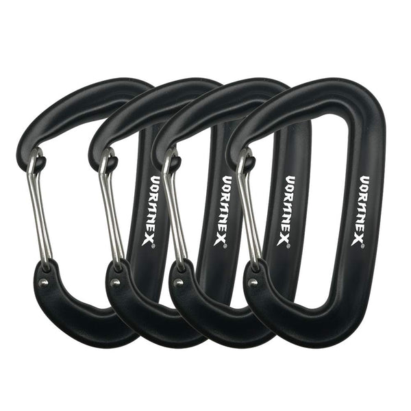 The Vornex 12KN Aluminum Wiregate carabiner is perfect for all kinds of applications It can be used as hammocks hangers or as a utility tool while backpacking, camping or hiking The load bearing rating on these carabiners exceed the maximum weight of your hammock and at 12 KN, The max load is 2640 pounds of force This 12 KN Aluminum Replacement carabiner from Vornnex also features the highly popular D-shape D-shaped carabiners are slightly smaller on one end and this helps to reduce overall weight The larger end boasts of a larger opening, making the product extremely easy to clip on and take off Product Specifications: Length - 318 Width - 186 Diameter - 024 Weight - 21 grams Acolor - Black