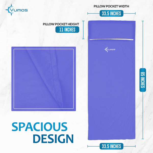 Do you need a small, lightweight, silky soft sleeping bag linerThe Vumos Sleeping Bag Liner is exactly what you needWhy should you buy our sleeping bag liner- Our liner has a full-length zip that runs down the left side and the bottom This means the liner can be fully unzipped to make a double sized sheet- The dimensions are perfect for one person, no matter how tall you are At 85 inches (216cm) long there is ample room for stretching your legs The width of 335 inches (85cm) is the same size as most sleeping bags so should fit perfectly- The stuff sack allows you to quickly pack up the sleeping bag liner after use without having to worry about folding it perfectly so it fits in a pouch It also means the liner is compact as possible so it takes up minimal space in your backpack- The liner is made of a silk like Polyester material so it feels great on your skin and means you can get comfortable no matter where youAre sleepingOur travel camping sheet has multiple uses, some of these include :- If you need an extra layer of protection from questionable cleanliness- You want to protect the inside of your sleeping bag from dirt after a hard days hiking- You want to add extra warmth to your sleeping bag on cold nights- On warm nights you just want a light sheet covering youcare Instructions- Machine wash cold- Delicate cycle- Do not bleach- Tumble dry low heat- Do not ironThe Vumos promise to you : 100% Satisfaction guaranteed or your money back Lifetime Warranty on all products Our customers are the most important thing to our business and we will do anything to make them happyclick on the Add to cart button now to buy your liner risk free