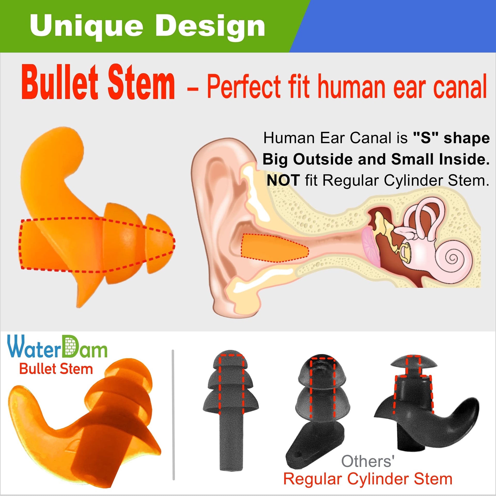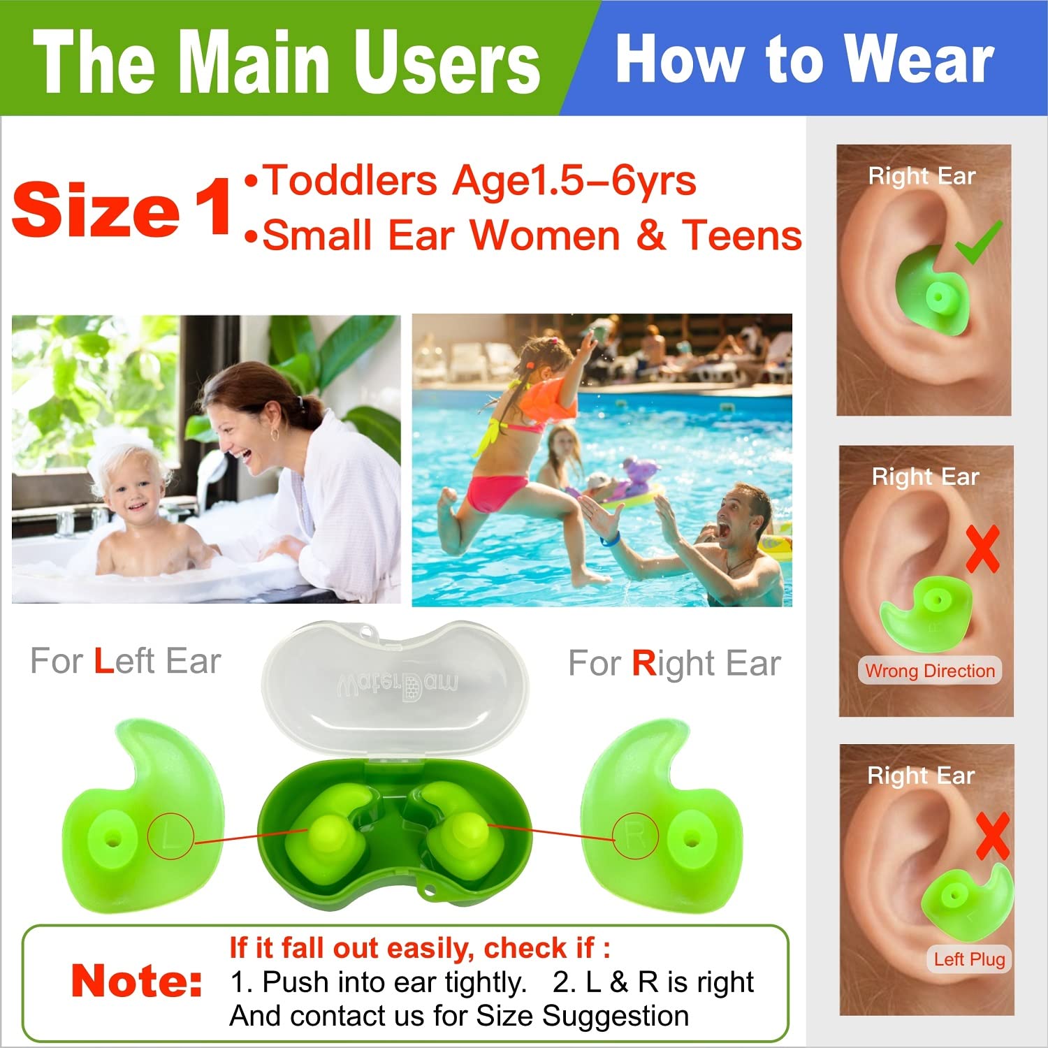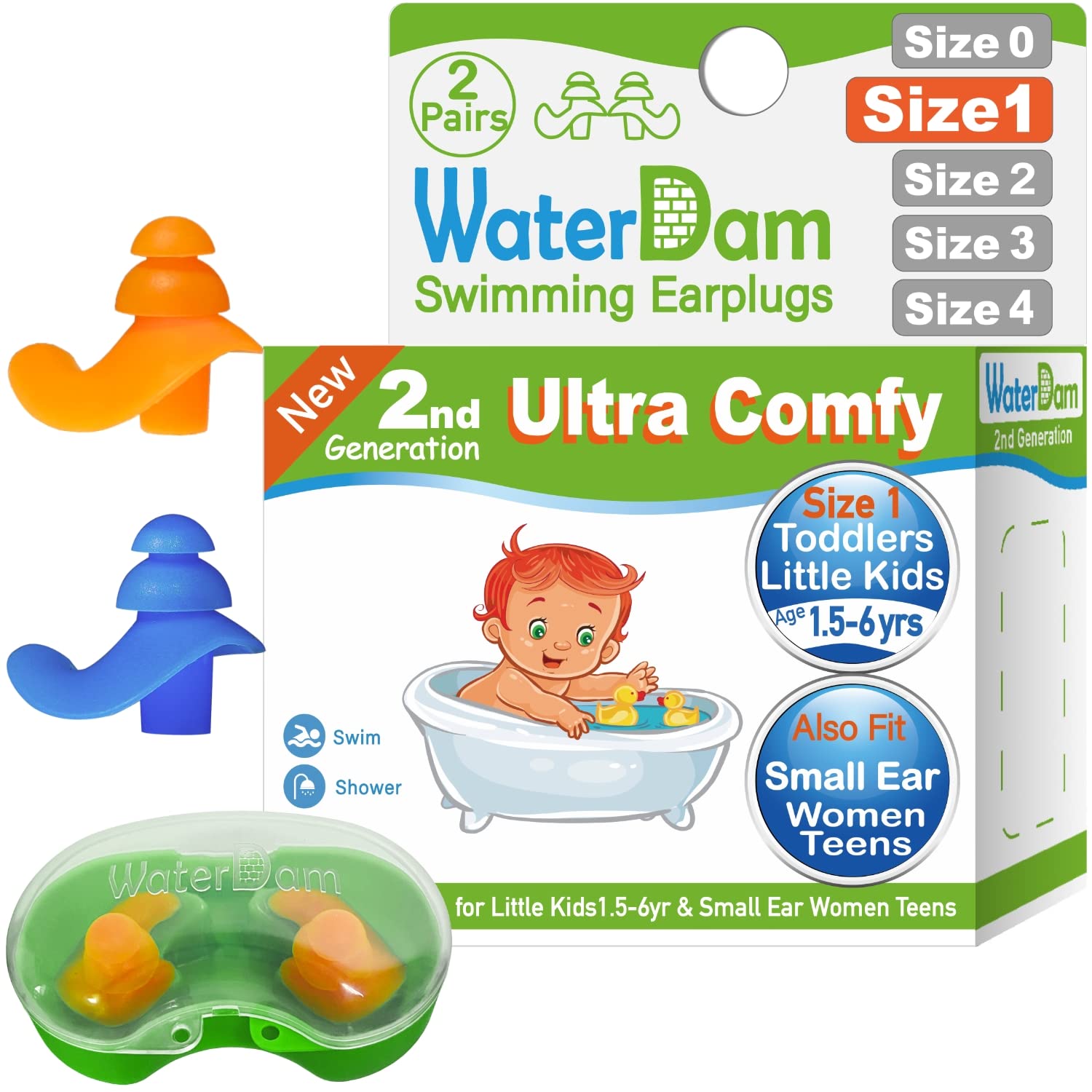 Waterdam Swimming Ear Plugs Great Waterproof Ultra Comfy Earplugs Prevent Swimmer'S Ear (Size 1+1: Toddlers & Extrasmall Ear Tee