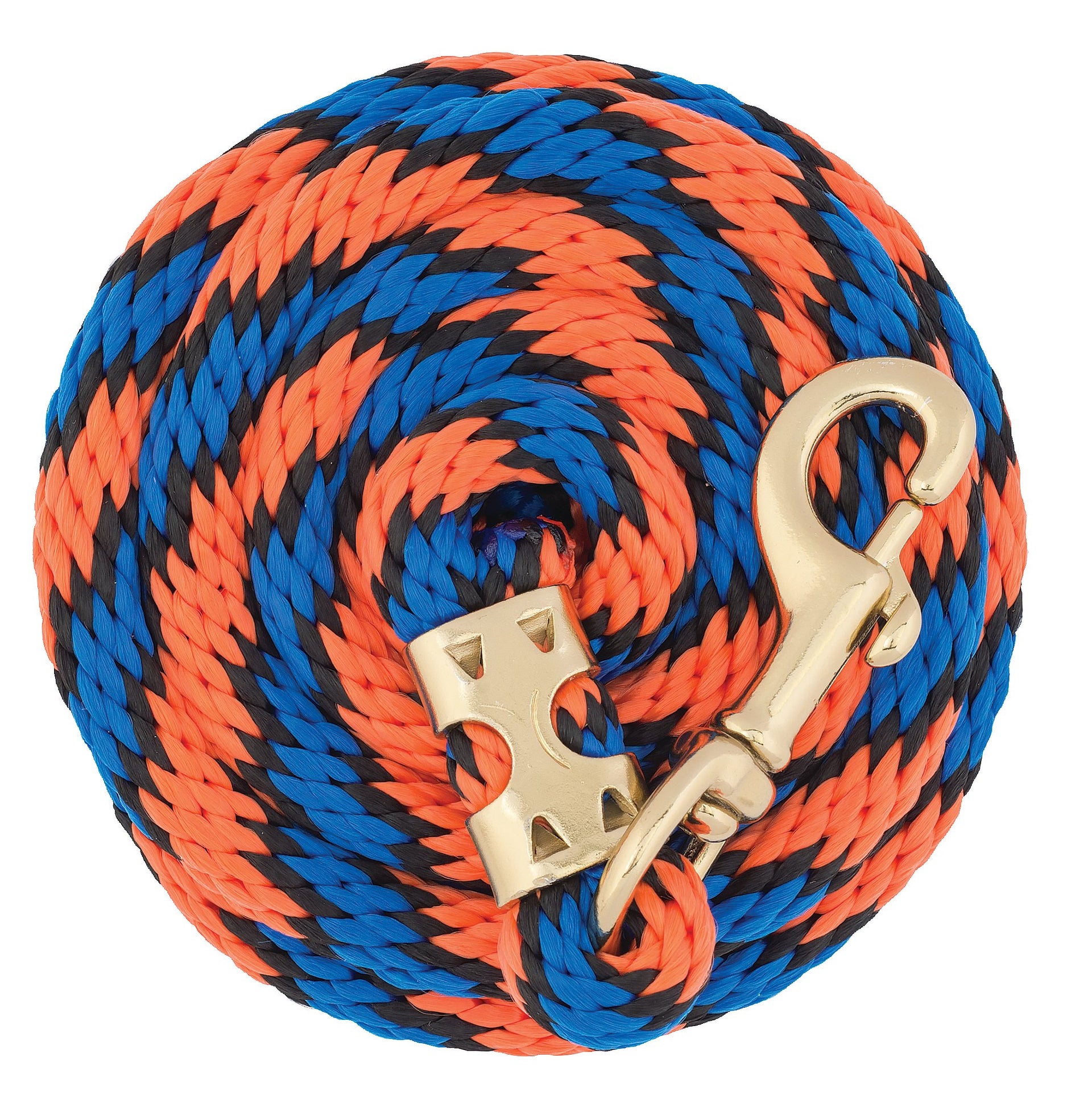 - Q: What color options are available for the lead rope? A: The Weaver Leather Poly Value Lead Rope is available in an orange, black, and blue color combination.