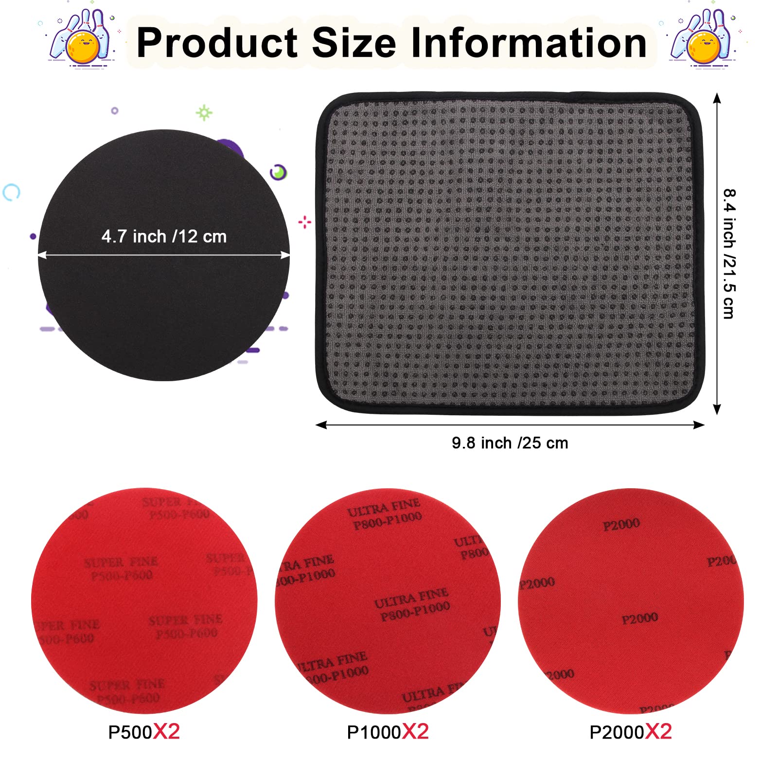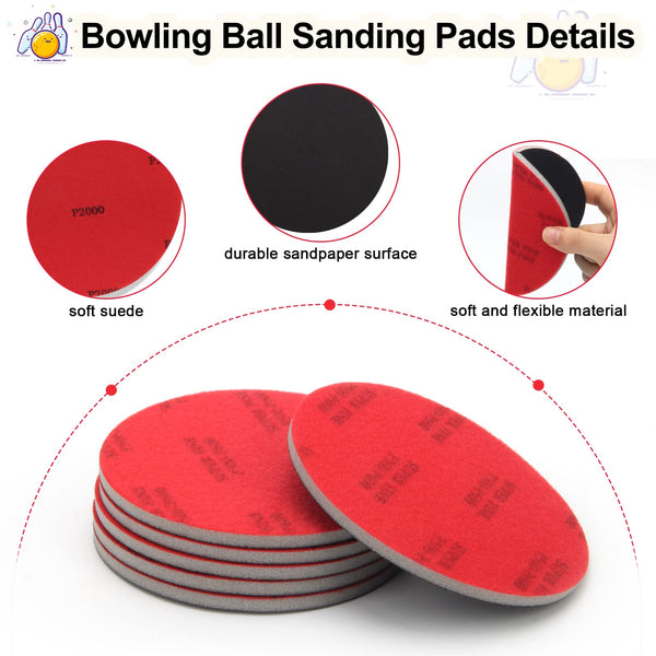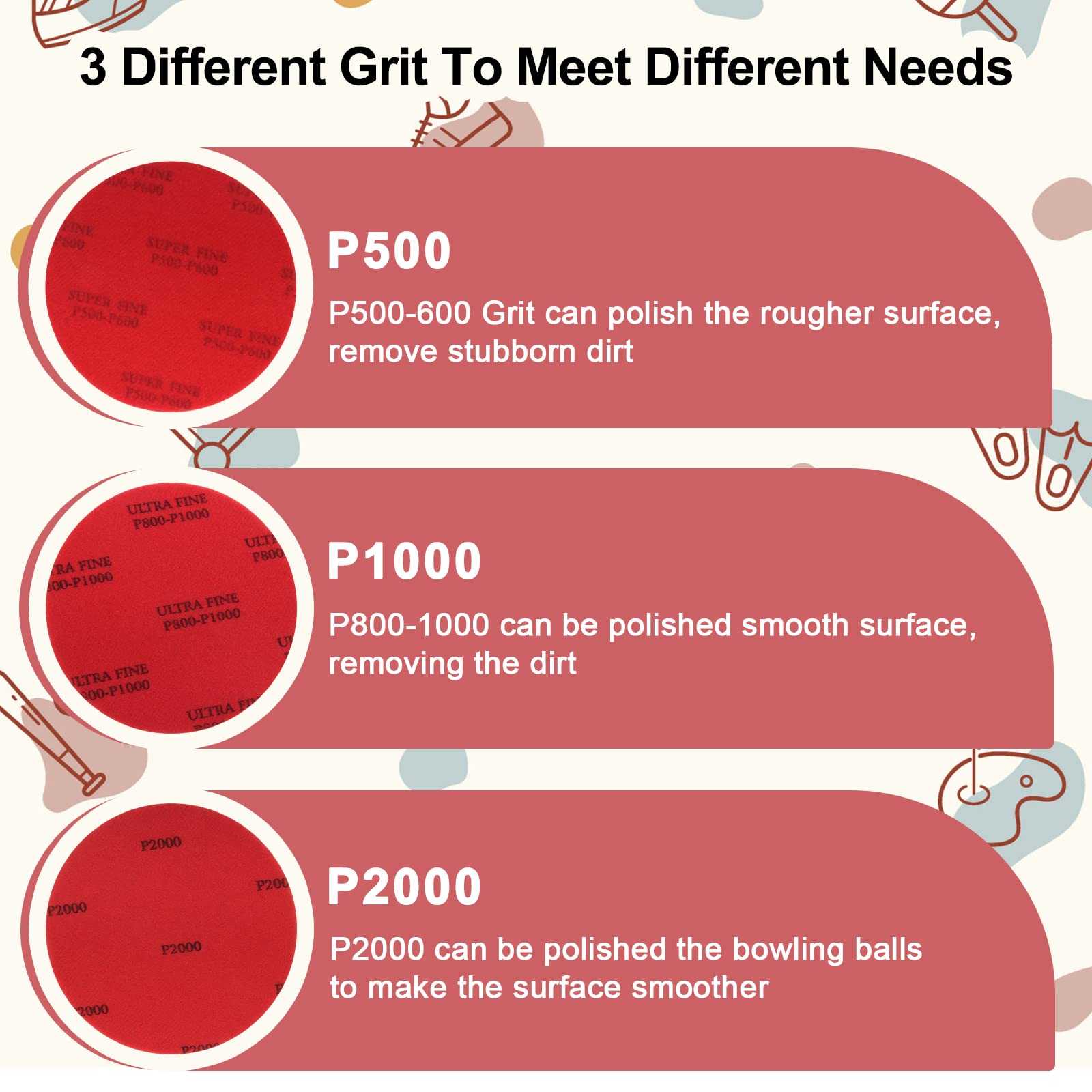 Windspeed 6+1 Pack Bowling Ball Sanding Pads With Bowling Towels, Bowling Ball Cleaning Pad 500/1000/2000 Bowling Ball Grit Pads