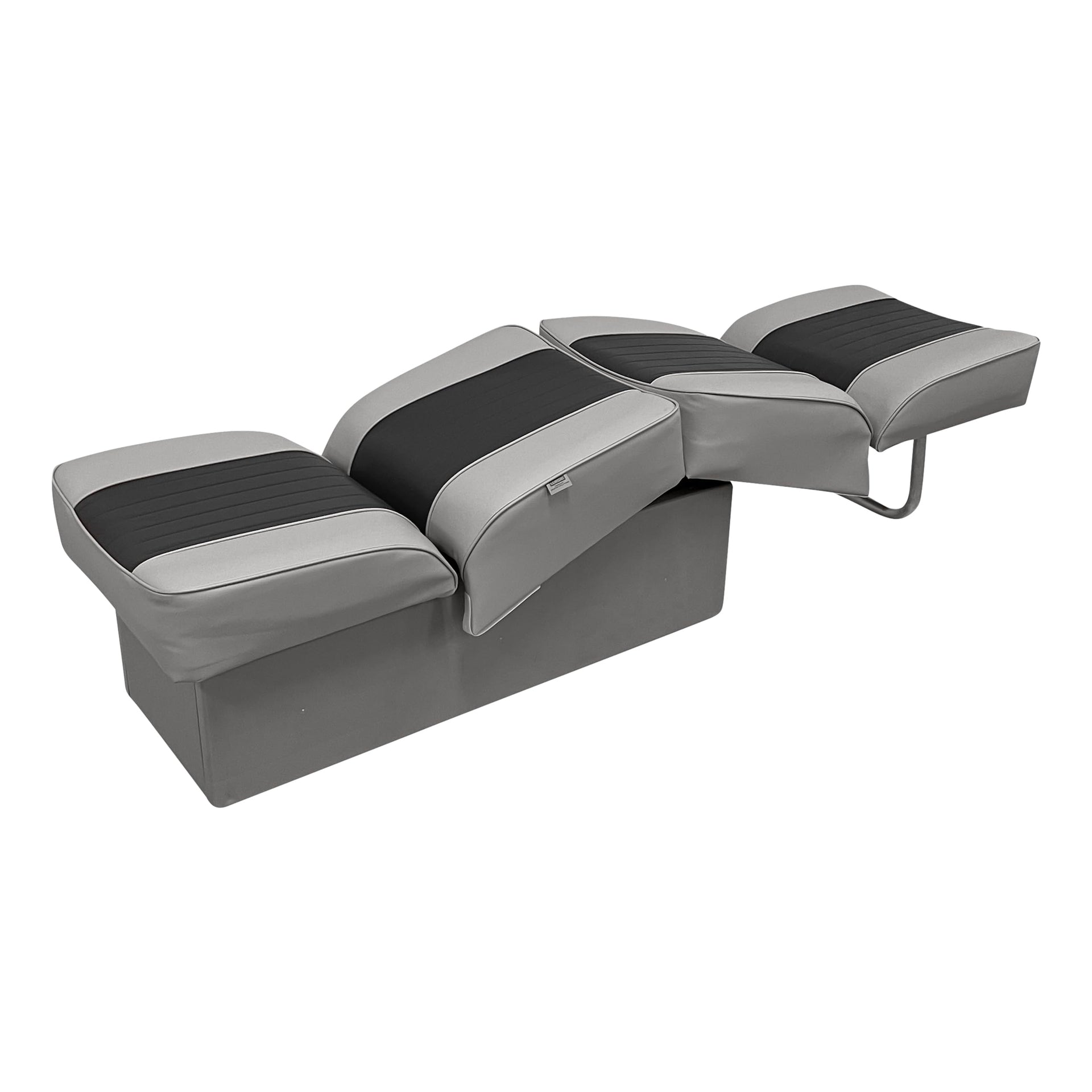 Wise 8WD707P Standard Base (10'' Height) Lounge Seat is ideal for replacing worn out back to back seats on your Runabout, Ski Boat or Fish N Ski Model. Injection Molded Plastic Frame. Marine Grade Vinyl withstands the effects of sun, heat, rain and soiling under normal conditions. Embossed Vinyl Center Panel. High Compression Foam Padding. Popular colors look great in all ages of boats. Seat opens to flat lounge position for sunbathing. Storage underneath. Easy assembly, Mounts directly to boat floor. Seat Dimensions - Height: 28'', Width: 17.5'', Seat Depth: 14.5'', Upright Length: 45.5'', Extended Length: 64.5''; Base Dimensions - Height: 10'', Width: 13.5'', Length: 36.25''. Color Match Jump Seat available, order Wise 8WD1414P Series Universal Jump Seat.