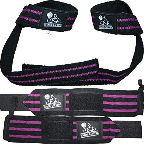 WRIST WRAPS & LIFTINg STRAPS - Bundle of 2 Pairs From Nordic Lifting - Maximize Your Potential in the gym Nordic Lifting Offers Premium Accessories for Weightlifting Workouts - Weight Lifting Straps made of durable heavy duty cotton (Dimensions: 15 X 23) - Wrist Wraps made of durable cotton with Elastic Support (3 x 14) - Straps with Neoprene padding for added comfort - One size fits all (Both women and men) Lifting Straps Functionality Extra long straps for better grip when lifting heavy weights More traction and gripping strength than chalk and leather straps Reduces hand and wrist fatigue Useful for many cross training exercises and powerlifting (specially deadlift), rows, pull-ups, chin-ups, shrugs etc Wrist Wraps Functionality Support and stability during heavy lifting Helps avoid wrist injuries Advisable to use for bench press, shoulder press, cross training and other fitness activity 2 Pairs For the Price of 1 - Inside Package: 1 Pair of Wrist Wraps (2 Wraps) 1 Pair of Lifting Wraps (2 Straps) Instructional on how to use wrist wraps & lifting straps comes in Nordic Lifting Signature Packaging Our guarantee We are so confident in our Nordic Lifting weight lifting accessories that we offer a 1 Year Manufacturers Warranty click the Add to cart Button at the Top of this Page Now and Boost Your Personal Lifting Records