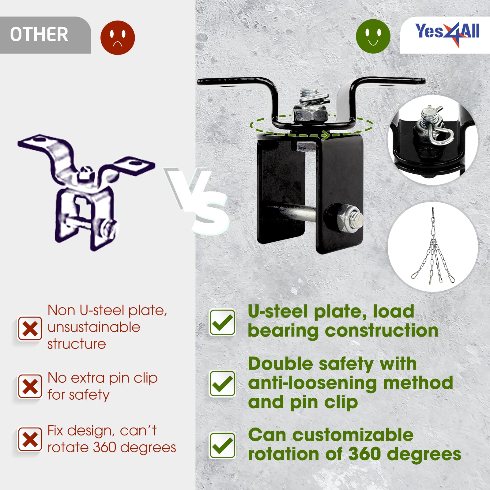 Yes4All, Heavy Duty Swing Hanger For Punching Bag - Heavy Bag Hanger - Bag Chain For Boxing Stand - Indoor Outdoor Playground Ha