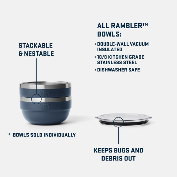 Three sizes of double-wall insulated bowls keep queso piping hot, and salads cool and crisp no matter where you feast