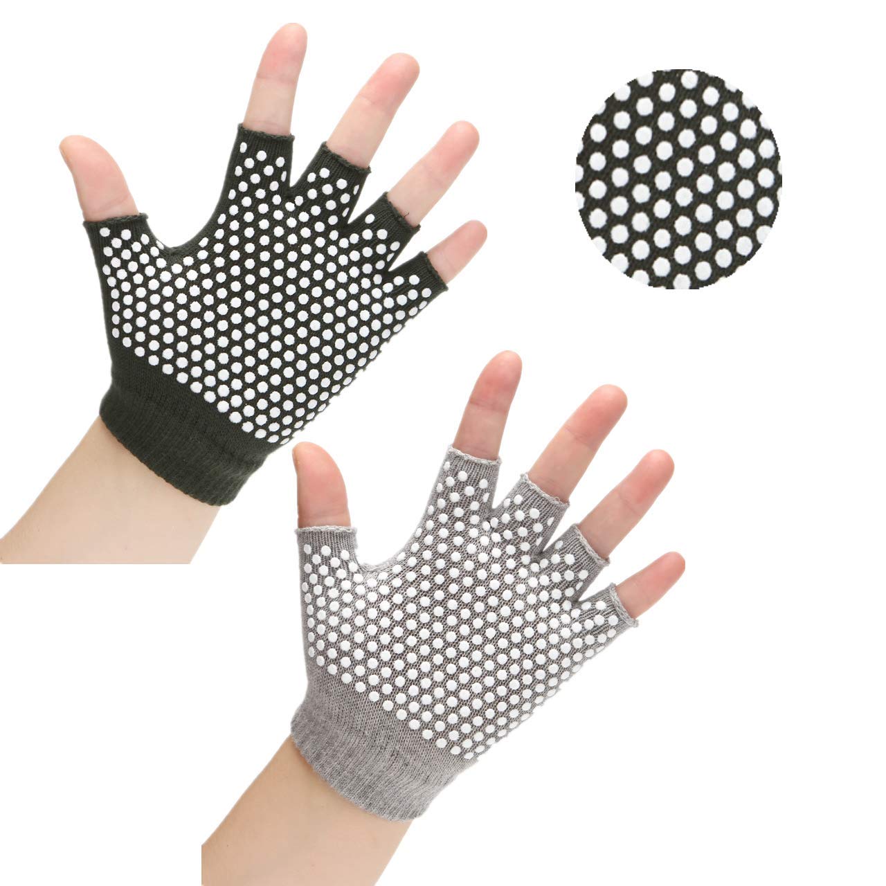 Features: -Rubber particles on the surface provides a non-slip surface anytime, anywhere to increase balance and stability -Fingerless design allows for better flexibility of your fingers -can be used to safely practice without a mat or with a mat for added grip -Non-Slip gloves mostly used for yoga, pilates, cycling, fitness, etc -glove size: One Size Fits Most for women and men -Material: 80% cotton and 20% polyester -Breathable, durable and sweat absorbent