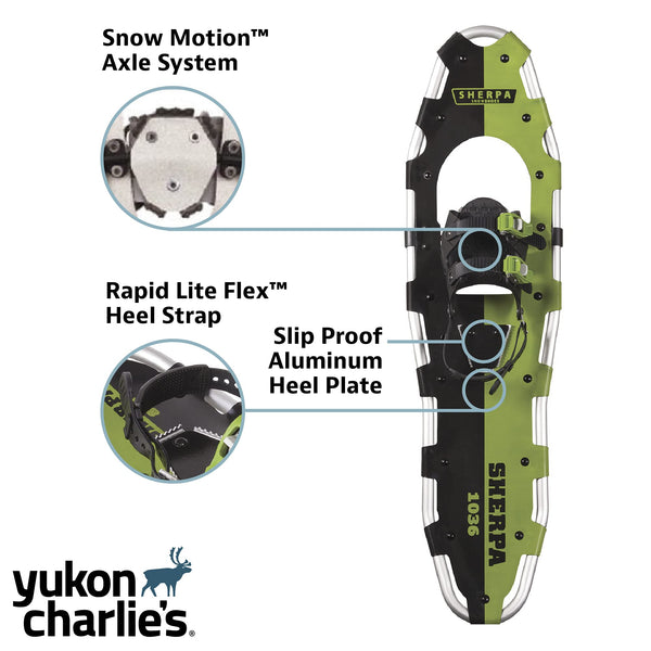 The best snowshoes for beginners, our Sherpa series is designed to deliver confidence and ease. Featuring user-friendly designs like our Quik Clik II ratcheting binding and a Rapid-Lite Flex heel strap, these will get you in and out of the shoe in seconds. At the same time, our ultra-durable HDPE decking and coated hardened steel crampons help you grip the snow and provide secure footing. Built with beginners in mind, this snowshoe is a perfect option for anyone looking to start snowshoeing for the first time. You'll never have to worry about frustrating devices-only having fun.