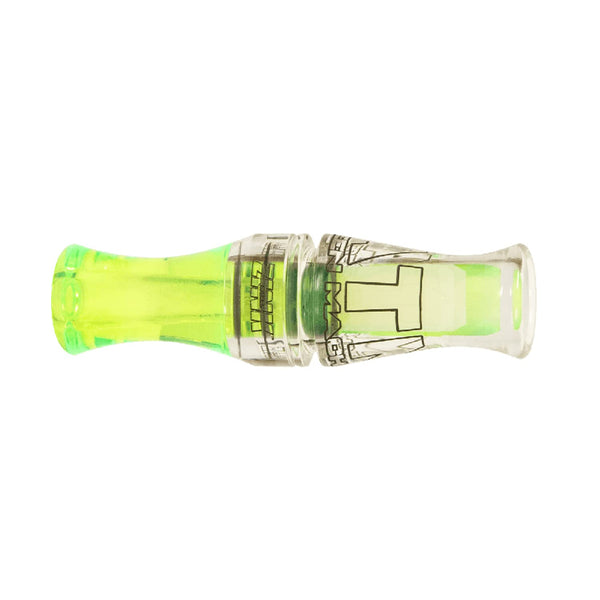 ZINK ATM GREEN MACHINE POLYCARB HUNTING DUCK CALL:Creating - Waterfowl Calls from Zink- requires special attention and most premium materials. Mouthpieces and bells are machined using software that considers every millimeter of every cut. Each call will ultimately run through the lathe three times and the mill once. With the cuts perfected, calls are hand-buffed or flame-polished for that gorgeous Zink finish. Our waterfowl expert secures the reeds and guts and then places the finished pieces together. He hand-tunes every call until he's completely satisfied with the sound. Then it's into the box and to your door.These Zink ATM Green Machine Polycarb Calls are molded after their original custom acrylic namesakes, polycarbonate calls integrate the premium quality and natural sounds you've come to expect from Zink but with the hunter's budget in mind. All polycarbonate calls come equipped with an easy-blow sound system, so even novice callers can produce undeniably realistic sounds.SPECIFICATIONS:- Polycarbonate waterfowl call;- Double reed;- In-your-face volume;- Realistic sound;- Great bottom-end feed chuck;- Z-cut tone channel that eliminates reed lock.